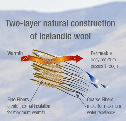 Icelandic wool keeps you warm and cozy, while allowing moisture to escape from the skin.