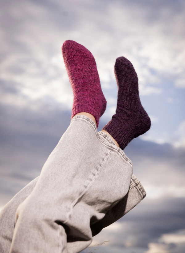 "Sátt" is an Icelandic word meaning "agreement," "reconciliation," or "peace." Reflecting this harmony, the pattern offers two versions: one in a striking black and arctic blue combination and another in green, both crafted from Plötulopi yarn.