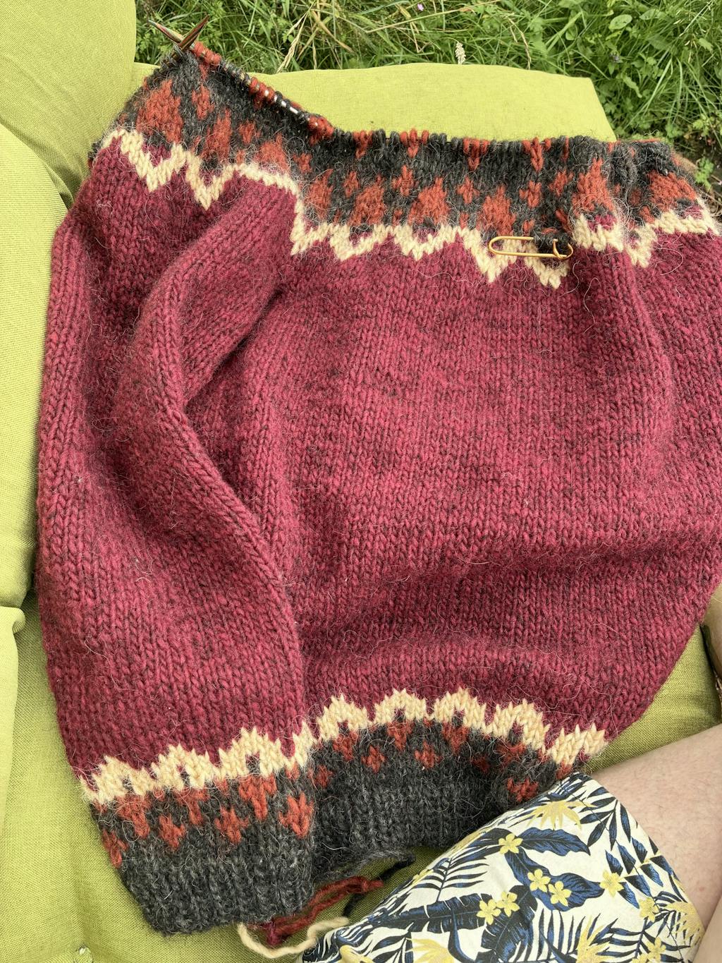 Body and sleeves are worked in the round from lower edge to underarms, then joined to work yoke in the round.